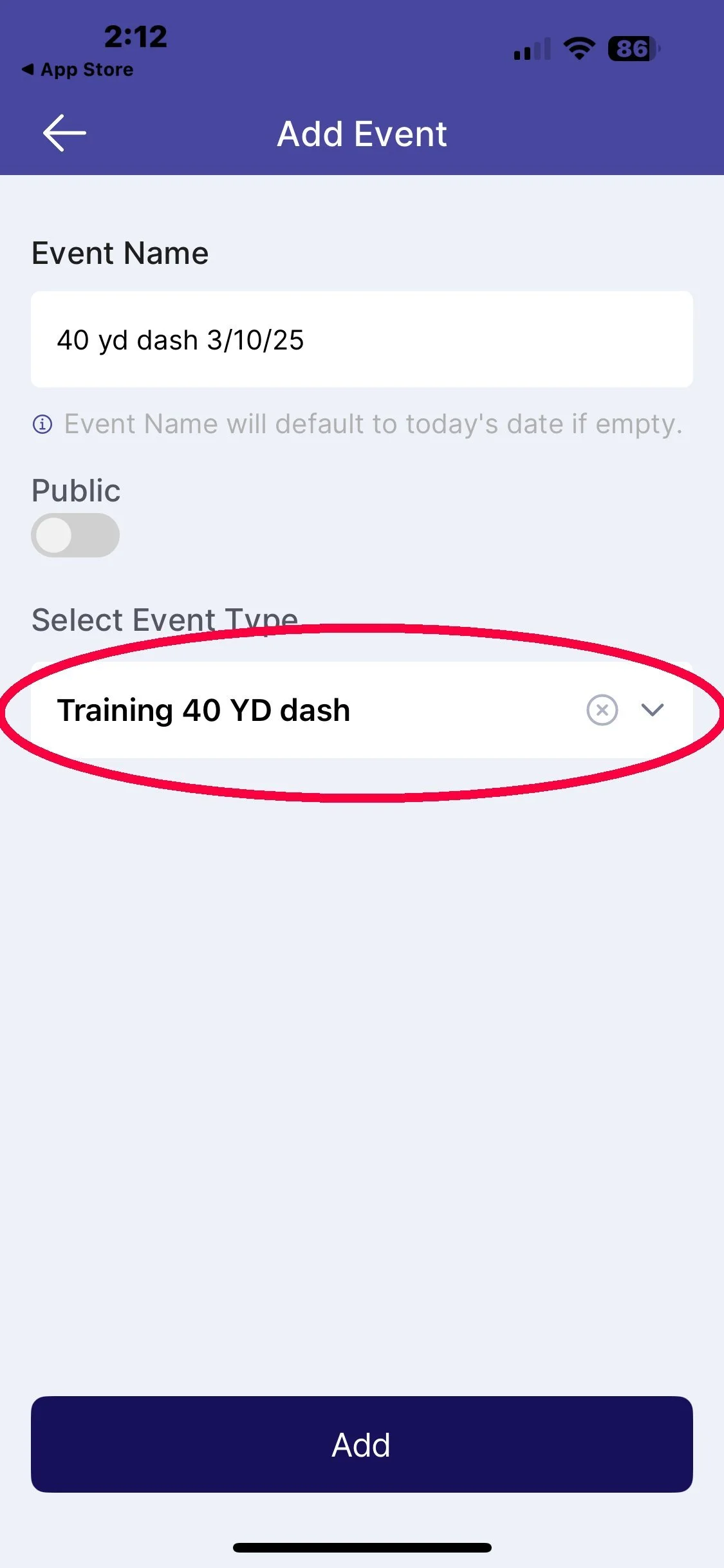 Click on the (+) to add a new event, select an event type that shows a distance in the name.